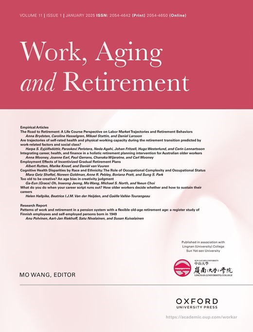 Tidsskriftet Work, Aging and Retirement er ute med et nytt nummer hvor det er en hel rekke interessant artikler.
